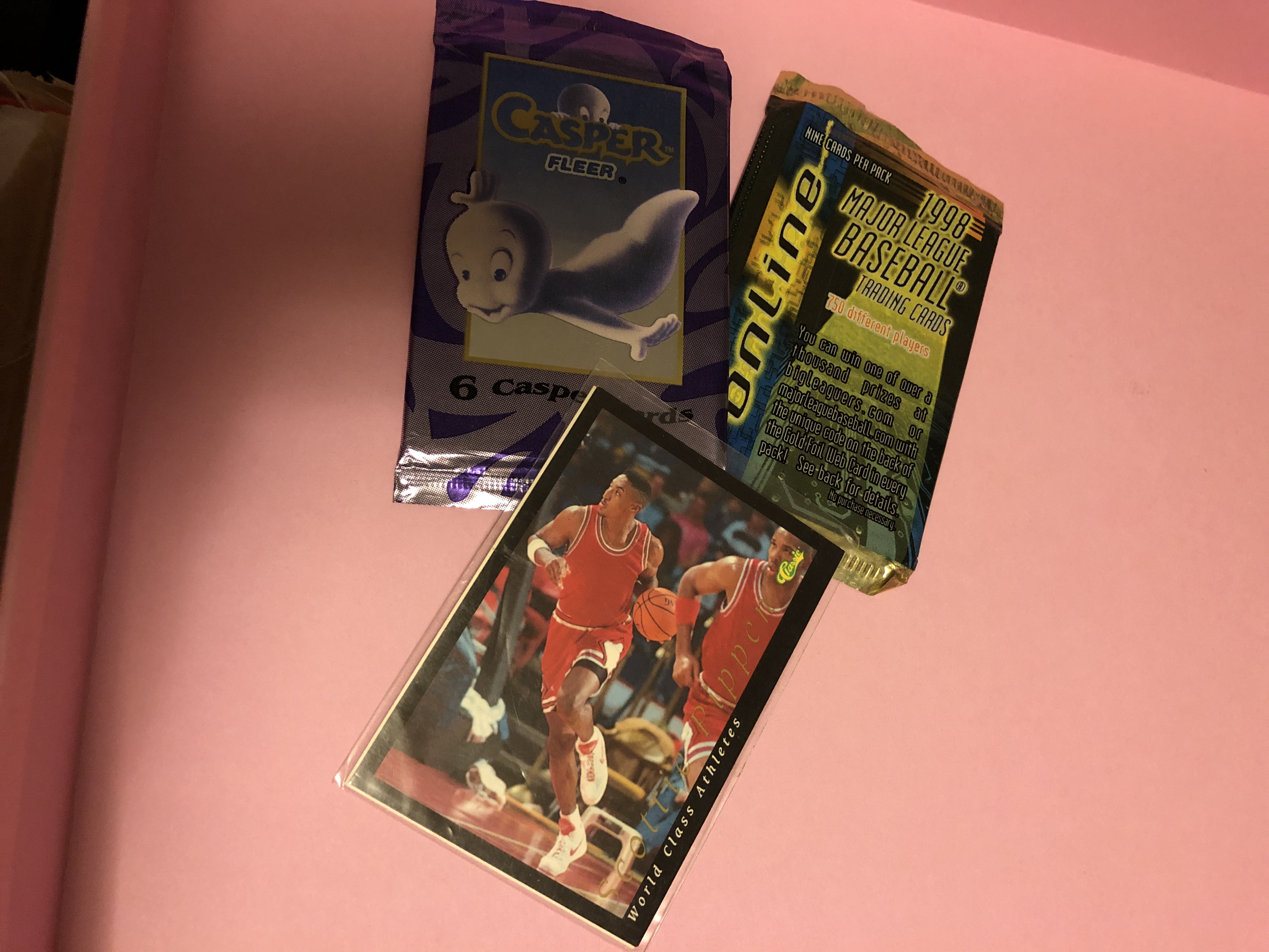My baseball card collection eventually went deeper. I started collecting all sorts of cards, the size of baseball cards. Maybe this was a thing when I was a kid. I remember falling out of favor with stickers around this time and picking up the old baseball card habit. My adorable, fuzzy, scented Rainbow Brite stickers, were replaced by the best Derrick Thomas cards, or Scottie Pippin (my heart swooned) or GASP! Casper the Friendly Ghost cards?! I even started collecting cards from popular music groups back in the day. You remember these cards? Super Star Cards they said. I had Paula Abdul and Debbie Gibson. I had Cheap Trick, and one time my sister tried to steal that one. Bitch. The weirdest collection I think I came upon in my tubs were the Desert Storm cards from Kaybee Toy Stores. Whew! Was that a flashback or what?