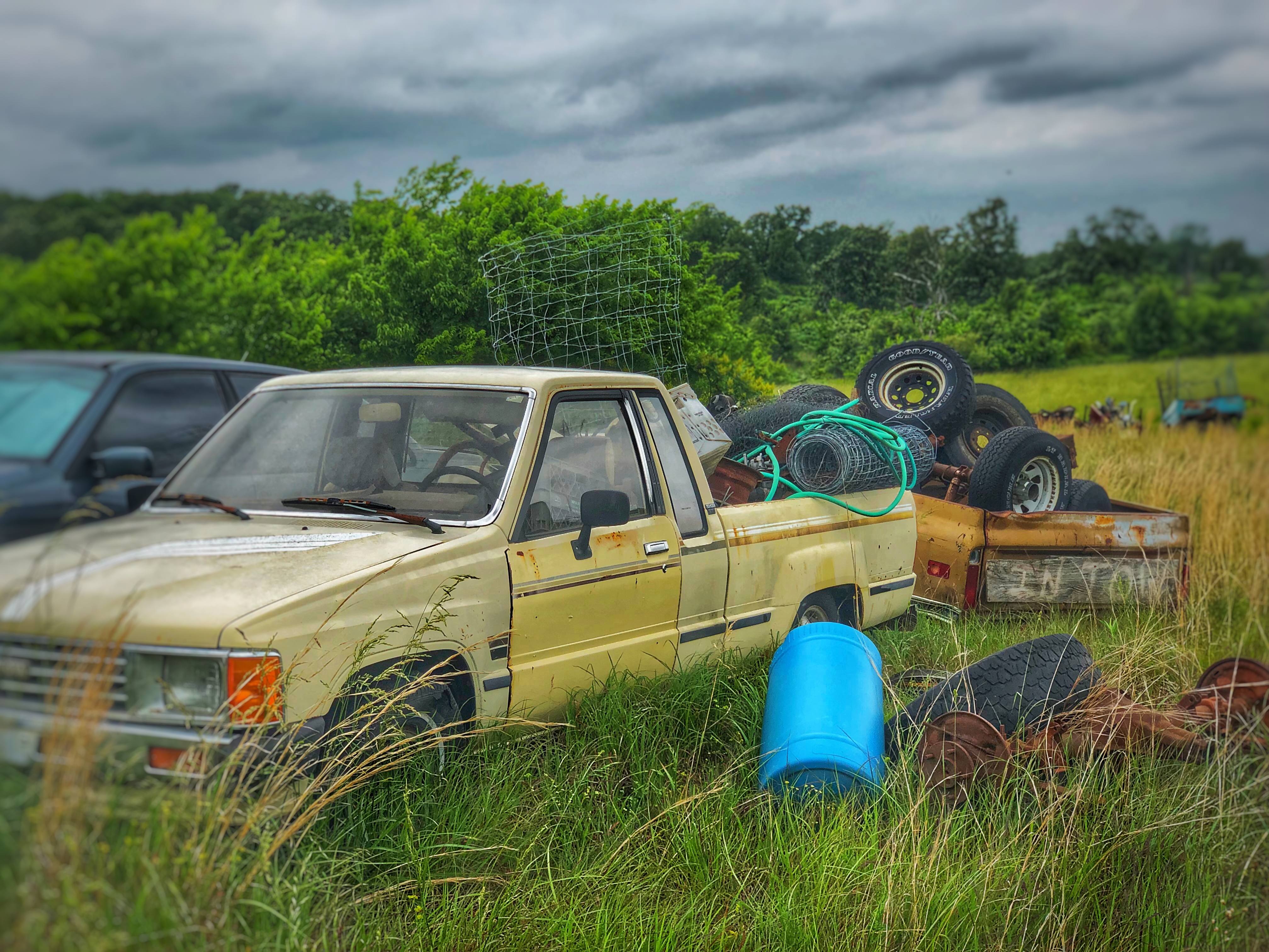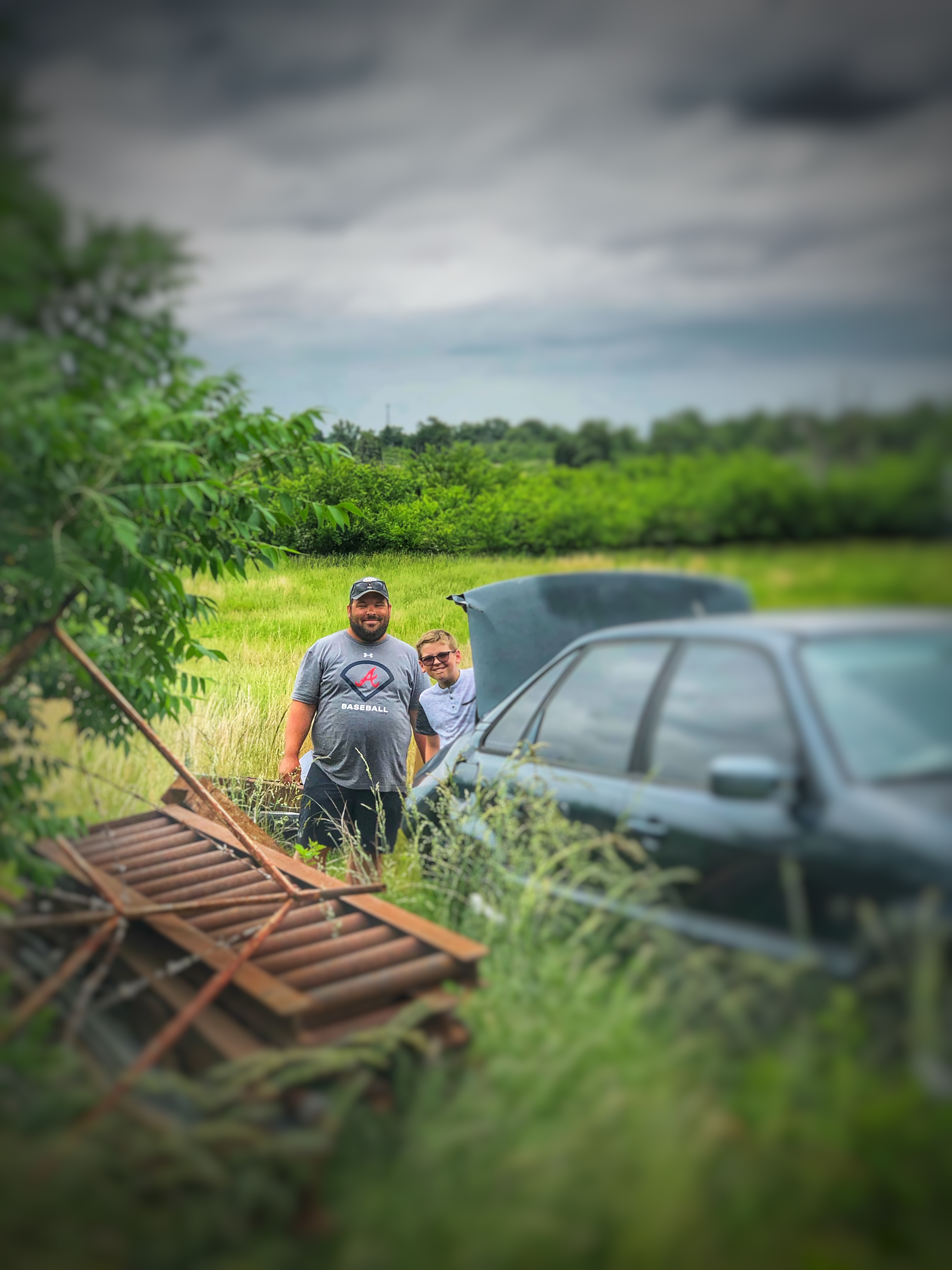 Over the last few weeks when I was not writing, I was still snapping photos. And I figure what better way to share them than on my bloggy-blog with all you unsuspecting souls. In short, when I get creatively blocked I go in search of my lost creativity. Sometimes I find it, sometimes I do not, but it is worth a shot (see what I did there, oh I make myself giggle). Anyhoo, here are some pics I snapped in Oklahoma last week. I took a short, unexpected trip to the Tulsa area and came back with these puppies. It was an interesting landscape. The raw, rural midwest in all its weathered glory. And I do mean weathered. There had been mass flooding and storms in the region, but we happened upon it on an overcast day with only small storms. The pictures of my husband and son are on a plot of land in central Oklahoma that belonged to my husband’s late uncle J.R., whom both my husband and son share the initials of (Jerimiah Robert and Jackson Riker). My father-in-law lives at his brother’s house now and we spent a few hours out there while Jackson and Sir Duke explored. Jackson is a car guy, if you don’t know, so he enjoyed fiddling with his Papa’s Chevy Blazer, then checking out some old cars his cousin has out back. He asked for pictures with the “cool” cars. 🙂 Honestly, it was nice to capture some shots of a place that means a lot to my husband. He used to spend summers out at “JRs place” and though Jackson never made it to meet his great uncle before he passed away, we think they would have hit it off.