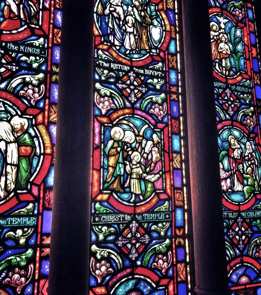 Throughout the mausoleum there are several stained glass panels depicting Jesus Christ’s life from nativity through crucifixion and resurrection.
