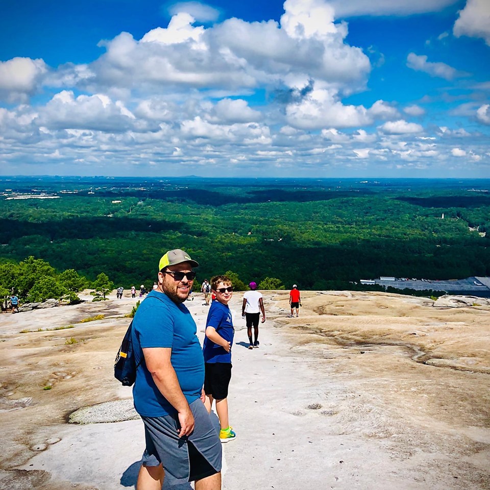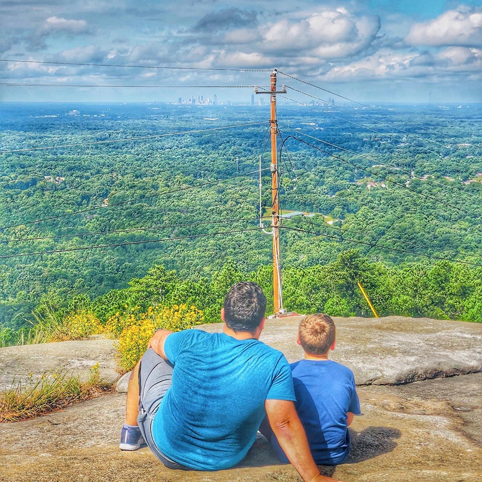 We didn’t take Duke because we checked ahead and it said that dogs can’t climb the mountain. But that didn’t stop people from taking their dogs (because people are horrible) and one pot-bellied pig, of which we passed on the way up and Jackson legit stopped in his tracks and said, “What the…?” while pointing to the pig, whose tiny legs were working hard behind his mom and dad. He was also not on a leash, though he had on a little fashion collar, it was, well, exactly what you would expect to see on a giant rock mountain, on Labor Day Weekend, in the middle of Georgia. Honestly, if I hadn’t seen a pot-bellied pig hiking the mountain, or at least three drunk grandpas, I would have worried.