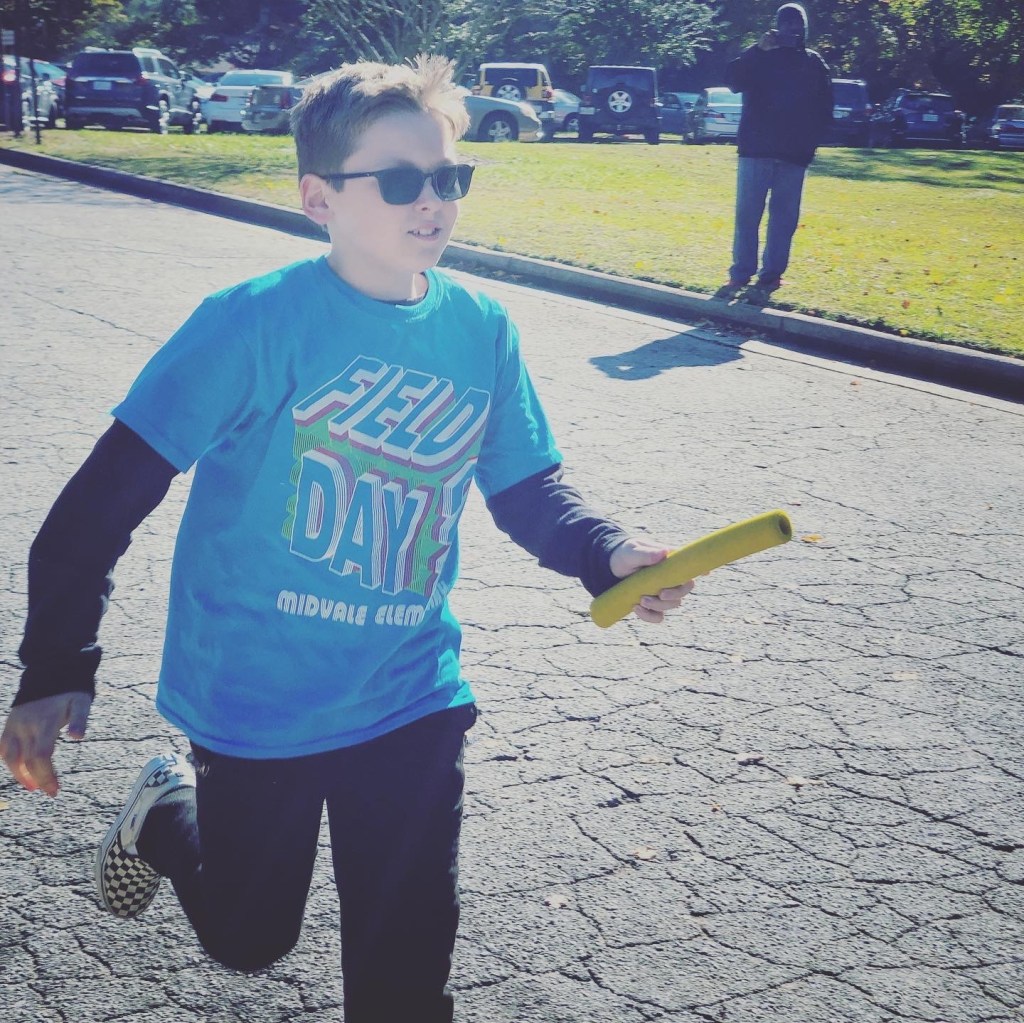 Jackson’s class was steady in second place for all the activities (there are three fifth grade classes), and when the kids were telling us that was okay, the Spanish teacher at the school overheard and whispered to Jerimiah and me, “Well this class may have taken second, but they are always FIRST in behavior. Man, this is a good class!” We beamed, cause yeah, we saw it with our own eyes. I told Jerimiah later that I felt lucky to have Jackson in such a good class, and he laughed and reminded me that it wasn’t luck. It was hard work in parenting to get our kid into the classes that he is in. It’s kinda neat having a kiddo that all the teachers want in their class. (Excuse me while I pat us on the back…) And honestly, there are a lot of “Jacksons” in his class. That’s why they took second so many times. They went slow and steady. Even in the three-legged race, when some of the other classes had kids sorta pulling their partners along, Jackson’s class was slow and measured. “This is what happens when you have a group of perfectionists,” Jackson’s teacher whispered to us. It was super cute to watch.