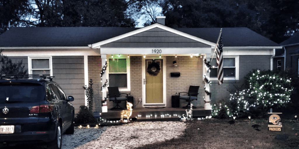 Fast forward to this year. And we certainly learned our lesson with houses. We are comfortably in about 2200 square feet now, with a large great room. We pulled the old six-footer out of the attic this week, set it up next to the fireplace, and looked at each and just knew we needed a new one. It was depressing as shit. Like for real, it looked sickly. And I was all, how is this the same tree as last year? Here, look at “The Little House” in Charlotte, in the heart of Villa Heights.