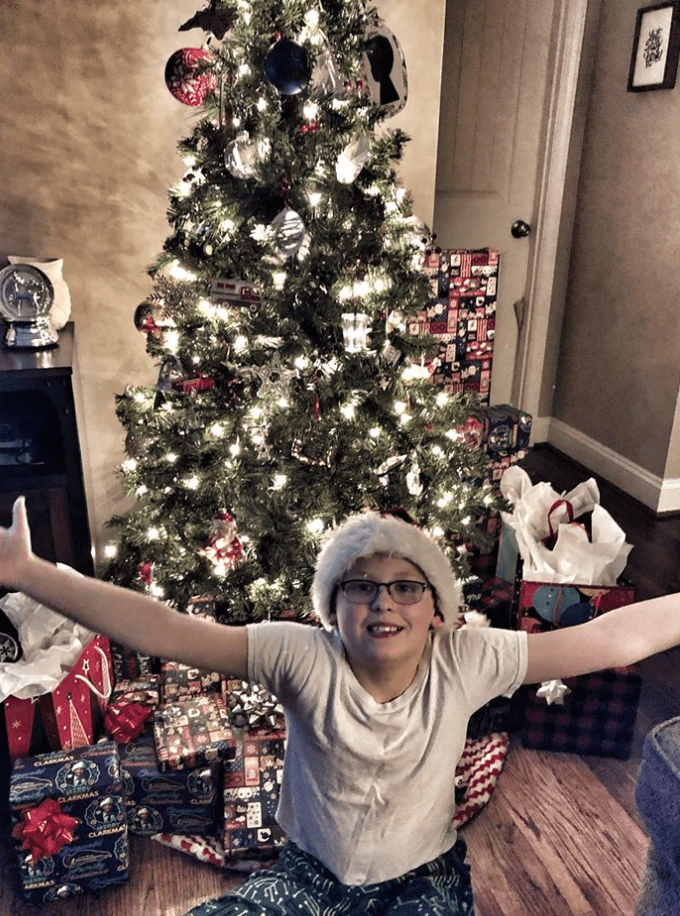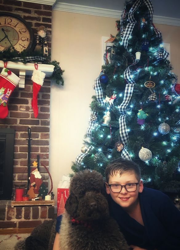 And Jackson in front of our adorable little tree in our adorable, little great room. Perfect.