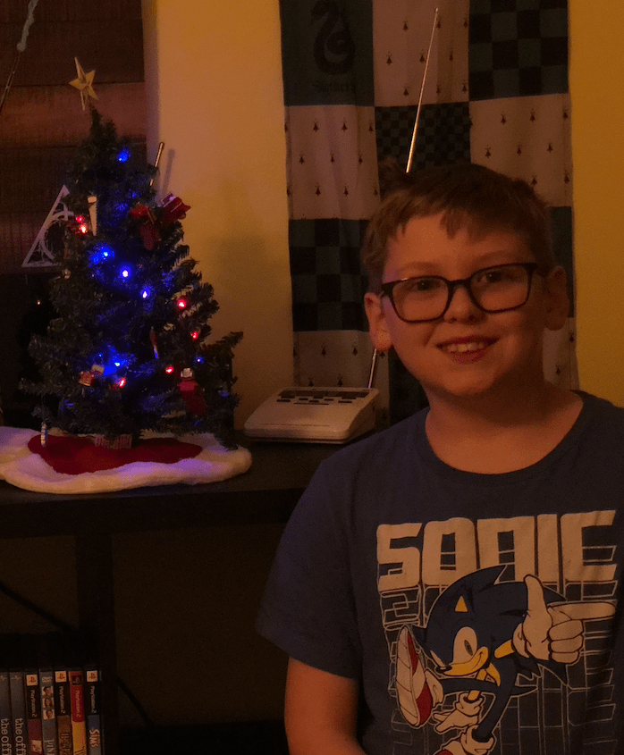 Um, yeah, that’s him in a Sonic shirt, with Harry Potter decorations in his room, and what’s that? Yes, that’s a weather radio he found at a thrift store and HAD to have for his room. He’s such a nerd. But it’s cute tho.