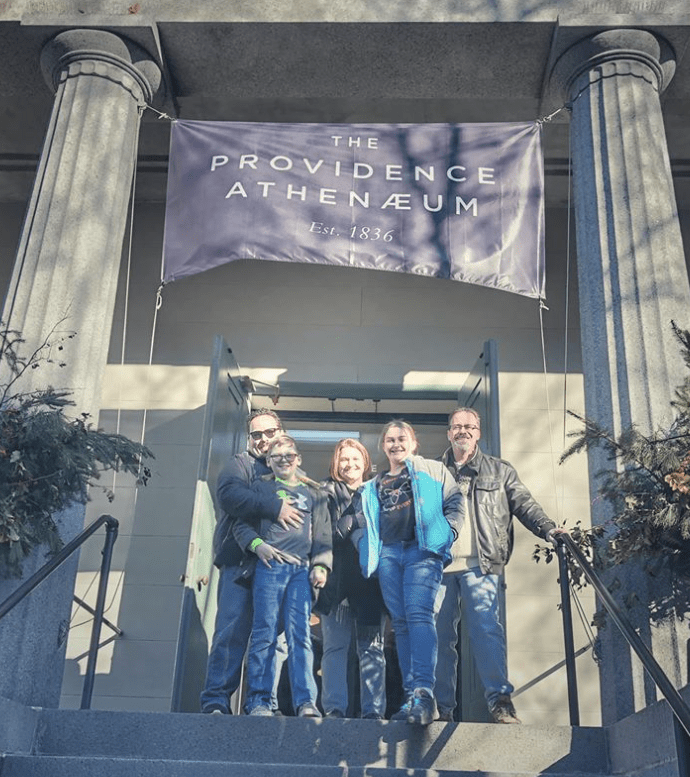 But The Providence Athenæum is its own kind of wonderful. Our Rhode Island friends wanted to visit since they moved there over the summer, but they were waiting on the right people to visit with. Insert the Goodnights. (Heart swooning noises). The day we visited was a hectic day. Our first day in Rhode Island, and we had a lot to see. We’d had breakfast in their wonderful village of East Greenwich, in a diner inside of an old train car. The diner was called Jiggers and I had the delicious Rhode Island Johnny Cakes!