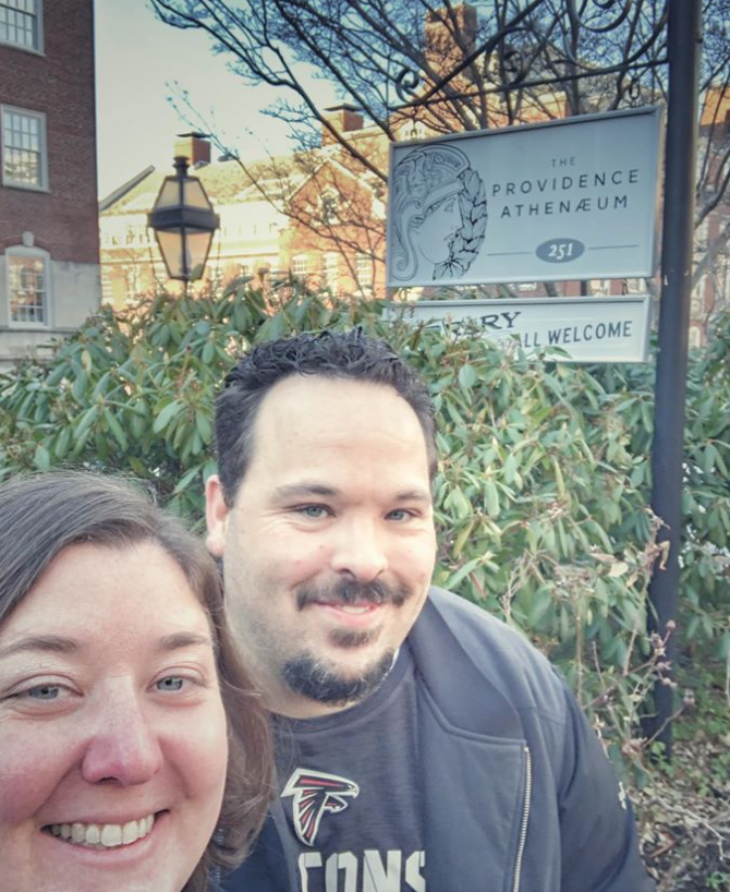 The Providence Athenæum is mere steps from the entrance to Brown University, with such notable alumni as, John D. Rockefeller Jr., a slew of Kennedys, Jeffrey Eugenides (please read Middlesex), Ted Turner, Horace Mann, and most importantly in our house, the reason the picture below was taken, Emma Watson AND John Krasinski.