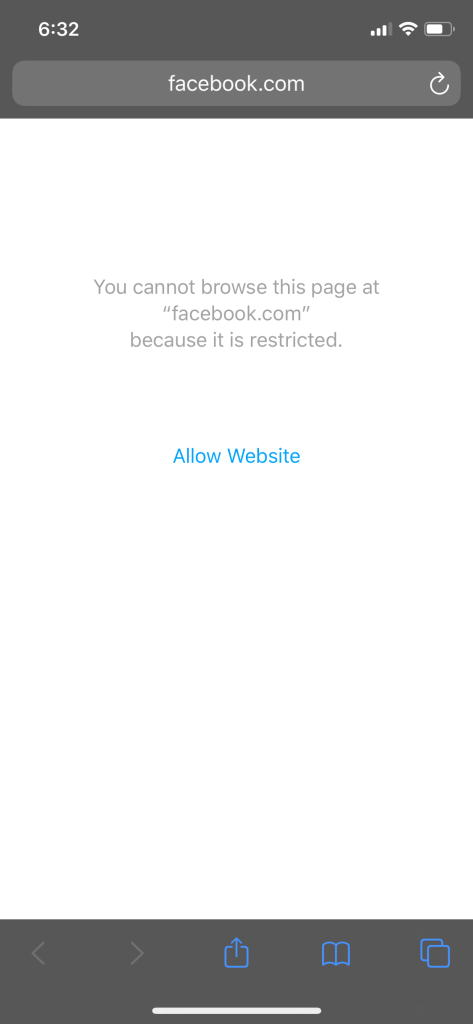 In what seemed like a moment of clarity yesterday, I deleted the Facebook app from my phone and asked my husband to log into my phone and ban me from the mobile version as well. I asked him to use the parental block, create a passcode, and block me from accessing Facebook for more than 15 minutes a day (just long enough to see puppy and baby pics, and post my daily blog) on my phone, my MacBook Air, and my Mac since they are all connected by some invisible Apple cloud in the sky. He agreed. He did it. Then I immediately tried to log into the Facebook mobile site.