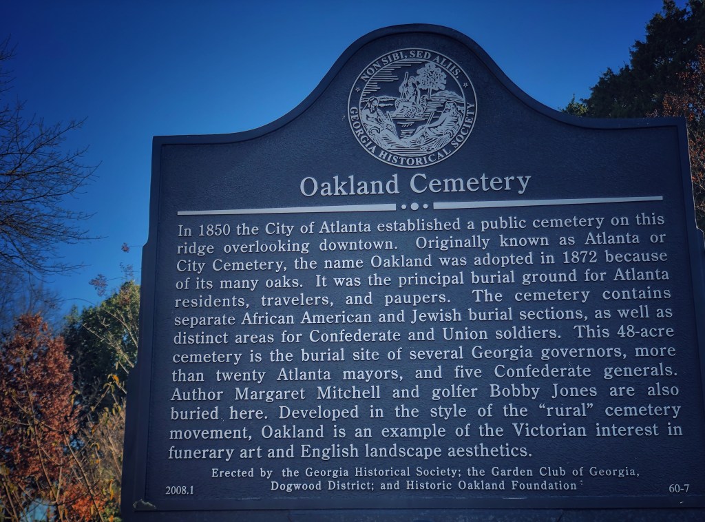 In 1850 Atlanta bought six acres of land and named it the Atlanta Graveyard. Charming. The land was sandwiched between what is now Decatur St. and Memorial Drive. We took the MARTA to King Memorial Station, hopped off, walked one block and found the front entrance. It’s a great stop if you ever find yourself on the MARTA headed into Downtown. It stops in Sweet Auburn, if you get off and walk north you’ll hit Rev. Doctor Martin Luther King Jr.’s home and memorial, walk straight to the Georgia Capital, and walk south and there you have Oakland.