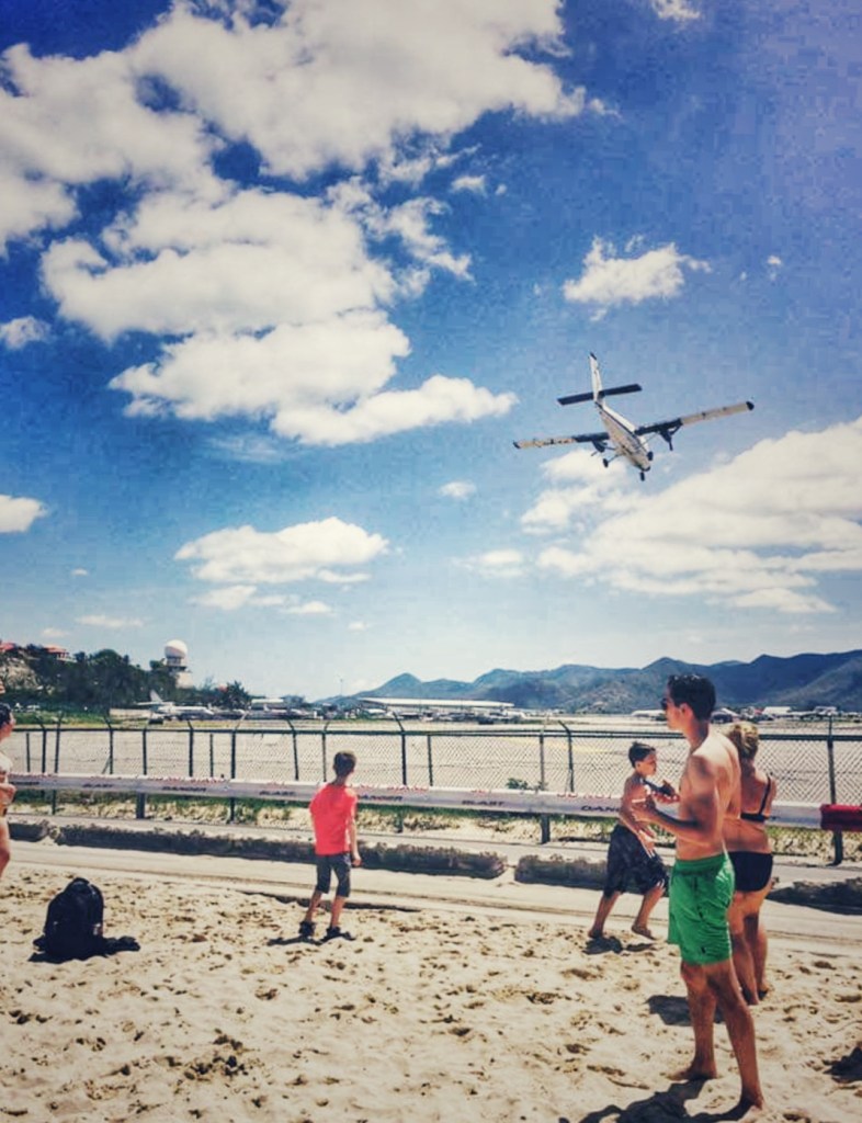 Jackson is fully clothed and in bright yellow, cause I ain’t no dummy. You will be able to spot him in all the pics, like I could spot him in a crowd of people, or if he happened to be drowning from being taken down by a shark. Of which did not happen, even though I absolutely assumed it would. Our taxi driver later went into detail about Maho Beach: