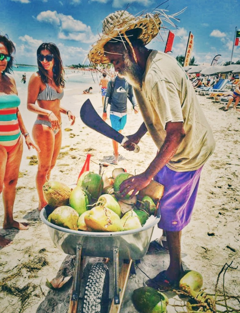 I don’t know his name, even though I asked him a couple of times and he told me, a couple of times. I’m blaming the coconut juice mixed with rum (for five American dollars) and the obvious sun stroke I was having that day. It could have also been because he was speaking Frutch. Or is it Dench? Who knows? He was speaking a pidgin language, code-switching, doing all those things, but he really should be a national treasure on both sides of the country divide. (And just so we are clear that is NOT me in the striped bikini. I know it looks A LOT like me, but it is not. She was speaking Spanish and had very nice, umm, words. La amo.)