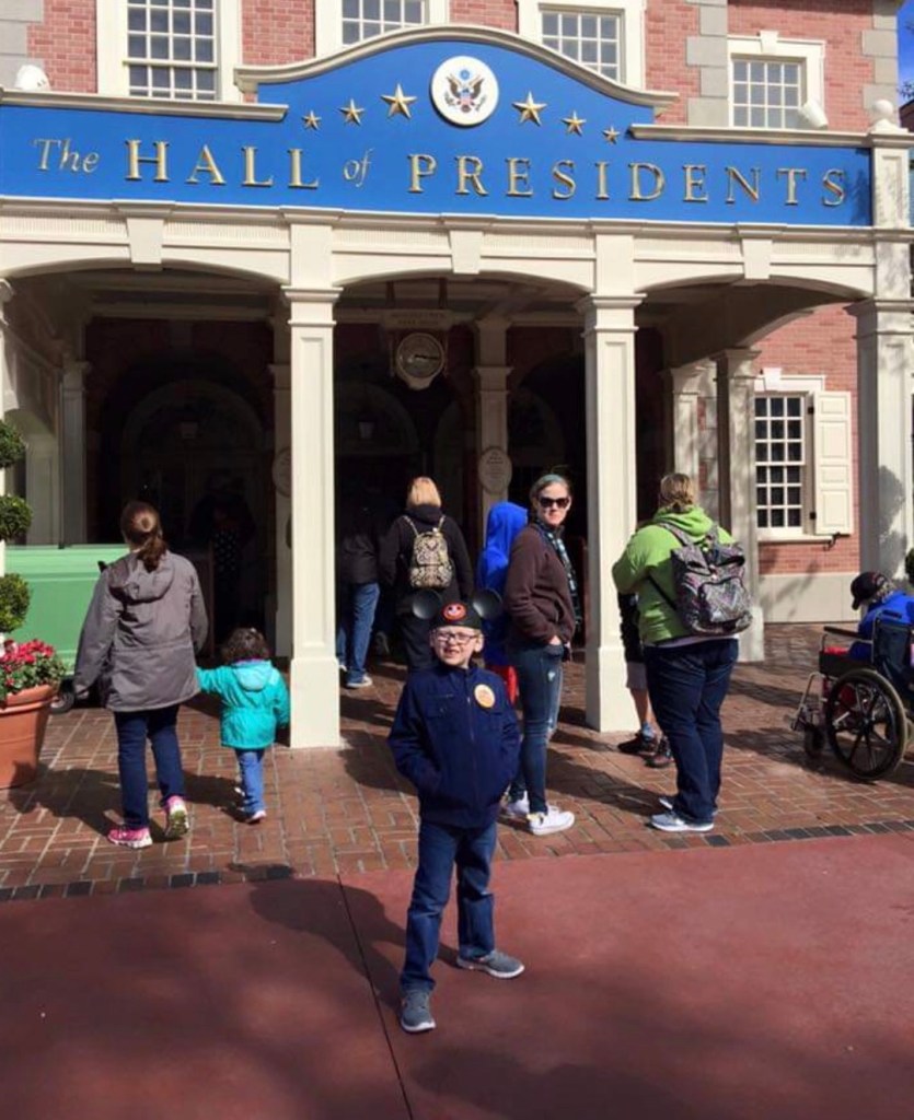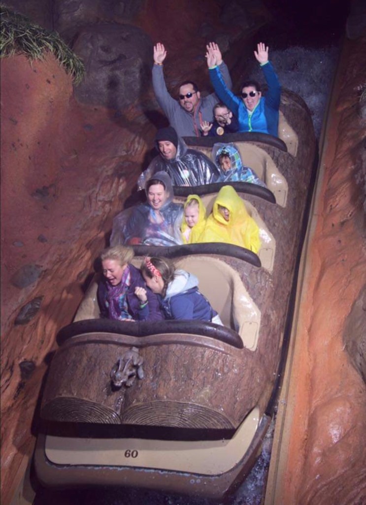 At Magic Kingdom we spent the whole day doing all the things! We met Alice (my one wish) and the Mad Hatter after we rode the Tea Cups. We rode every ride we came across. We met every character we saw. We even saw one of the day parades and visited the Hall of Presidents. But after all that Jackson still insisted we go back to Epcot. He REALLY loved Epcot. So after a bite to eat for dinner at one of the casual places at Magic Kingdom we headed back to Epcot to close that bitch down on our second night. Here are more pics from the second day, including my favorite of us, the one on Splash Mountain. It’s such a metaphor for this trip, and for how we live our lives. Everyone else was covered and cowered. We were free with our hands up screaming our minds out. Cause that’s how you do things. 🙂