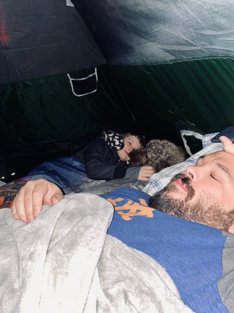 And then we all fell into a wonderful, quiet night of sleep! Just kidding! It was freezing cold, our air mattress apparently has a slow leak, and Jackson was unable to sleep because it was the night before Easter and the damn Easter bunny was set to come. So, yeah, it was like every, single night camping I have ever had. It was a hellish nightmare and I simply don’t want to do it again. But the next night, ahhh, we slept in our own bed again.