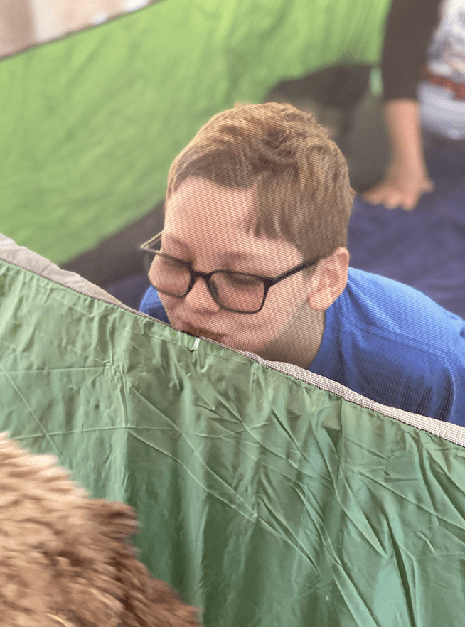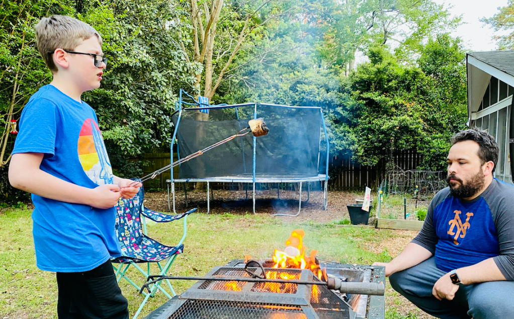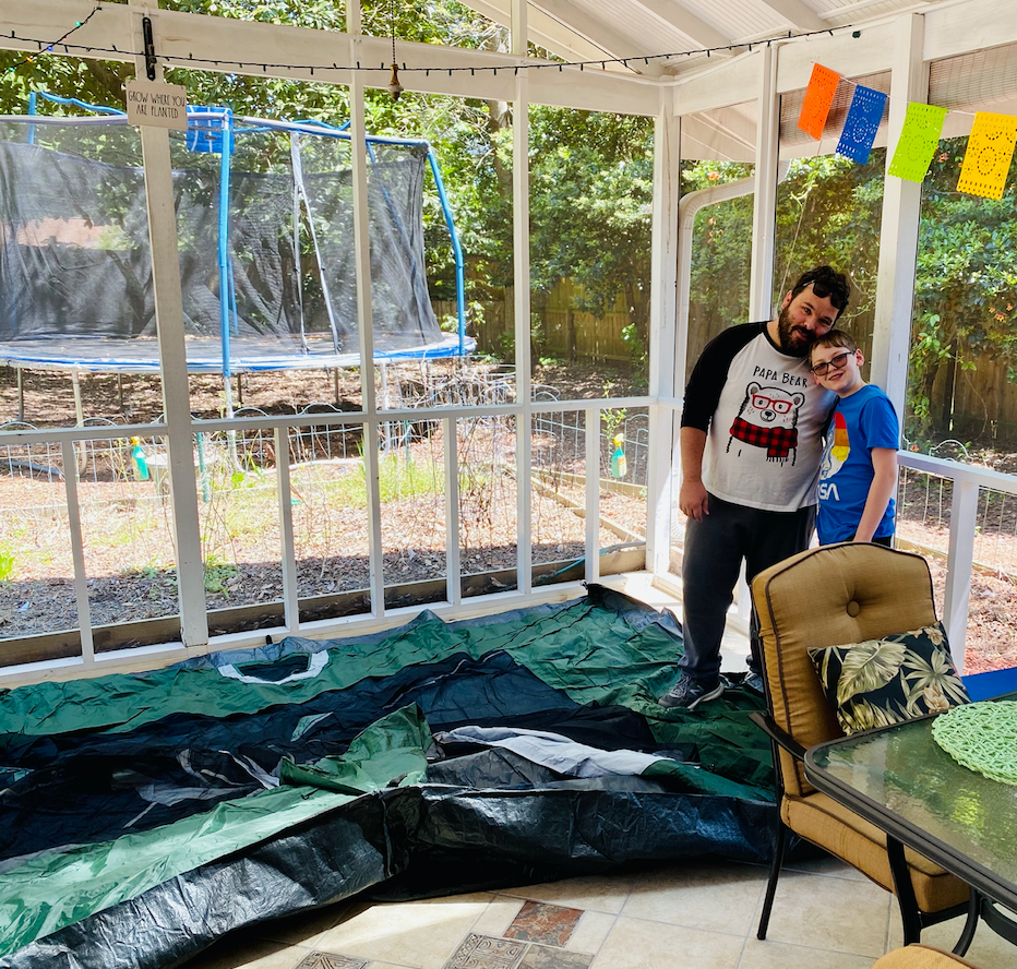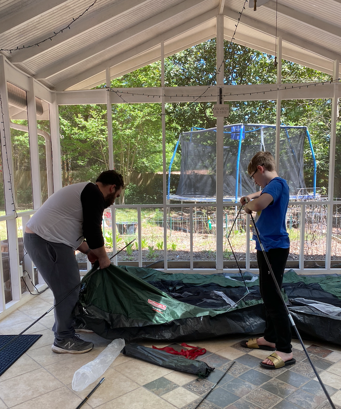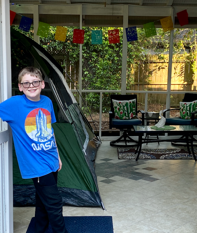As some of you might know, we had big plans for travel this year. We started the year out with a fun trip to New England for New Year’s, and had a trip planned to Kansas City in March, and one to Florida for Spring Break. But of course all that was cancelled because of the worldwide pandemic. So instead, during Jackson’s spring break last week, we camped out in our backyard! Well, technically we camped out in our sun porch, because, well, I’m not a “camping” kinda girl. And Jerimiah is not a “camping” kind of guy. And Jackson is not a “camping” kind of kid. But we do like s’mores, backyard games, and watching Saturday Night Live as a family, so we compromised.