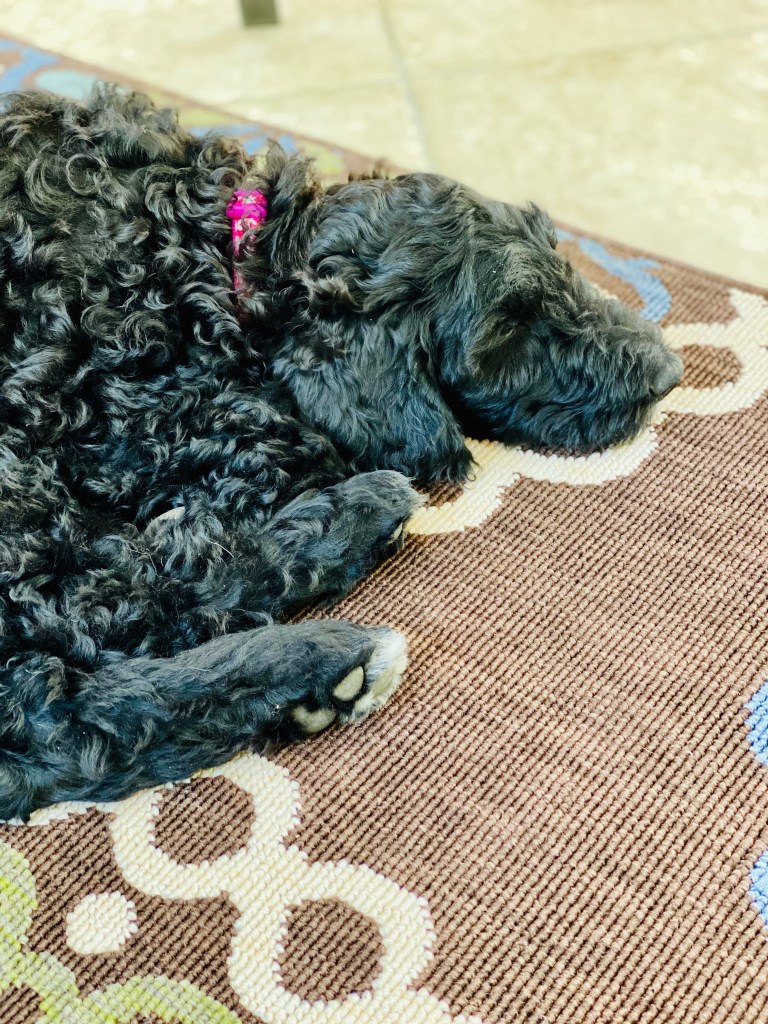 Guarantee if I were to post this pic to one of those poodle sites the first thing someone would ask me is, “Oh, is this a standard?” And they would already know the damn answer. They could tell by looking at the pads of her feet. See that little bit of white there? Uh huh. Dead giveaway. She actually has a white chest and some of them would actually die upon seeing her white chest, then come back to life to remind me that this is a “poodle site” and that there are several other places where I might feel more comfortable sharing this picture. Le sigh.
