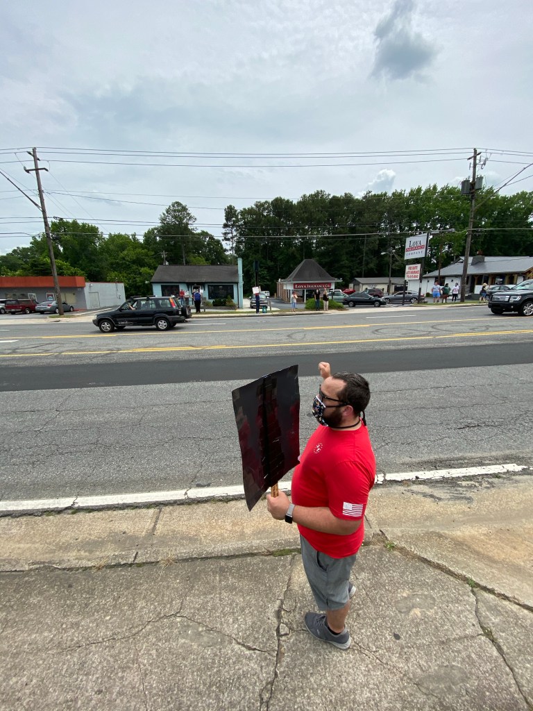 The second night we were rained on a bit, but didn’t mind, it felt nice after the heat. We had police escorts at all protests, thank you DeKalb County Police, and we had city council members, and supporters who honked, honked, honked all night at us in solidarity. Some screamed “Black Lives Matter” out the window, some threw their fists in the air, some just smiled and waved.