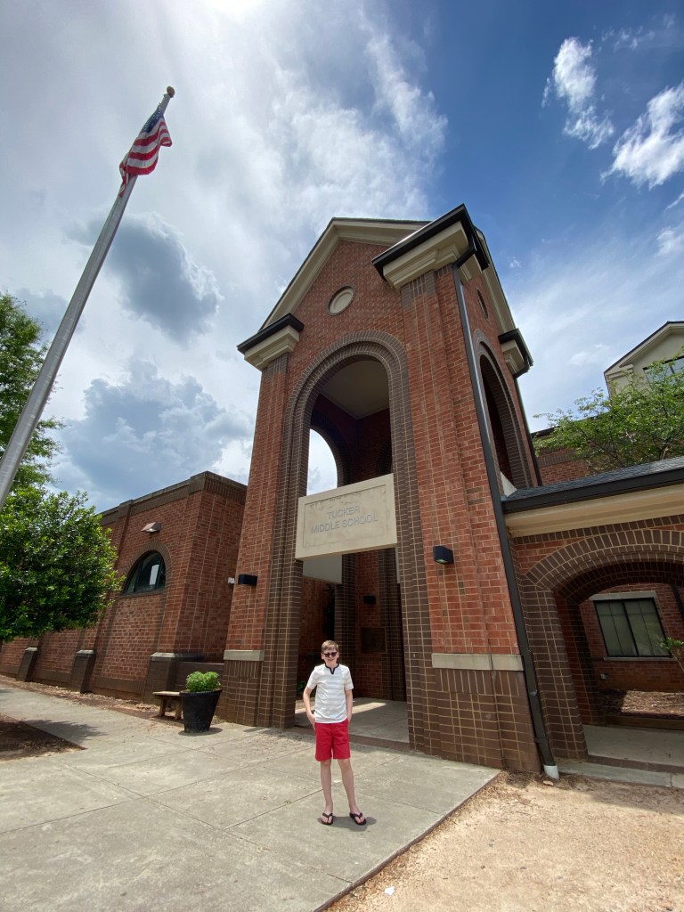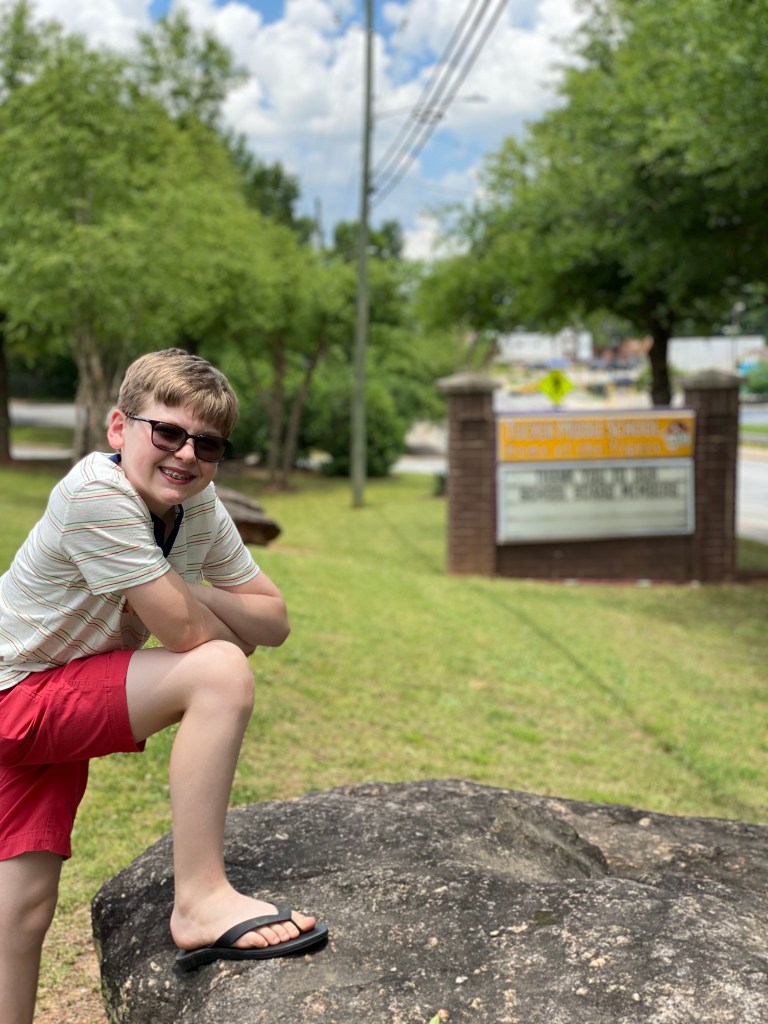 Well obviously I had a meltdown and now here I am. Enjoy pics of him in his new shirt and the ones I forced him to take in front of his middle school earlier this summer. I’m gonna go drink wine and cry now.