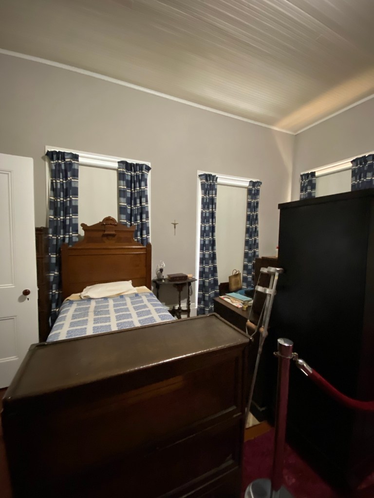 Bookcases and birds. That was the extent of Flannery’s bedroom. She kept a tight ship with all the rest. Her bed, desk, and chair were all within an arm’s reach so she wouldn’t need to rely on her crutches when she got around. Her bed was a single, with one small quilt on the top, and a cross next to the cradle Catholic’s window. Make that bookcases, birds, and God.