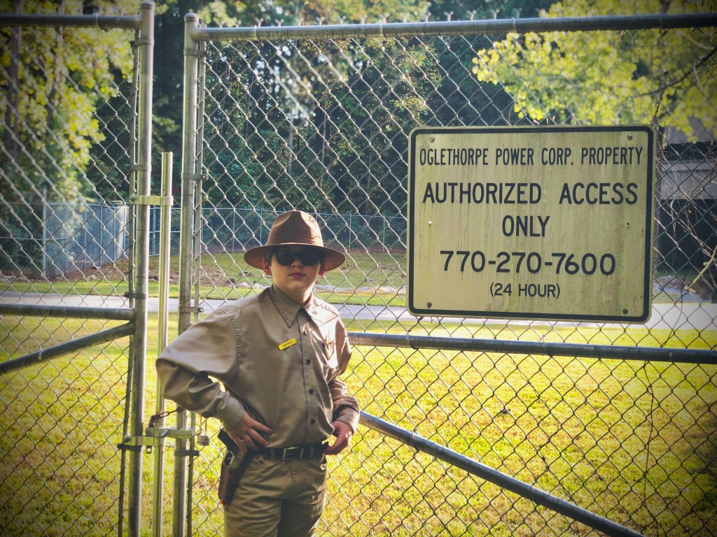 Jackson was dressed, of course, as Police Chief Hopper from “Stranger Things” because we just finished the first season and he’s obsessed, and also he knew we might need the protection of the law, especially when we reached the “creepy, energy place that has a fence around it” like in “Stranger Things.” We were all, “Oh sure, okay. (Wink, wink).” Until we got to the fence with barbed wire and we’re like, “Oh damn, yep, that’s like in the show. Weird.”