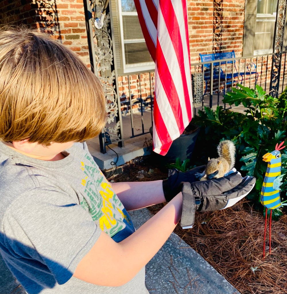 For sure. A tiny, baby squirrel who had fallen out of a tree and was in such shock that it was trying to get into our house, while the dogs lost their mind at the glass front door, then tried to climb the brick by our front door and fell again. I couldn’t take it anymore, so Jackson and I sprang into action (after I turned the heat down on the mushrooms I was sautéing.)