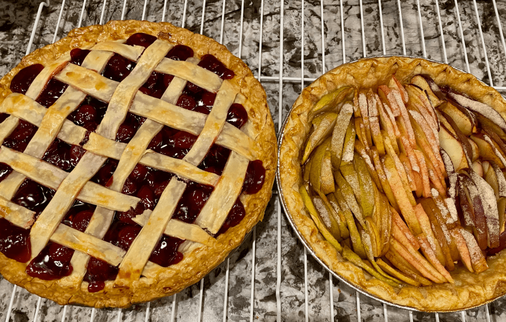 All you do is buy varying shades of apples, thinly slice them, layer them in a pie crust (you can make your own if you’re that kinda person) then sprinkle cinnamon sugar over the top and bake it low and slow. Like for real, that’s it. I bought a pie crust because I’m easy and cheap, yes I mean that, and took a painstaking amount of time picking out apples the right shade of green, yellow, pink, and red, like too much time. Like, I spent too much time inside a Kroger during a pandemic picking out apples.