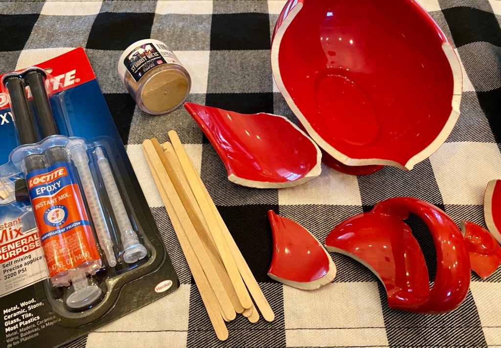 Kohl’s made it right by shipping me a new trivet, but they couldn’t ship me a new sauceboat because they are out of stock. So I sat there in madness for a second, wondering who the hell packed the box, considering it was a nightmare packing job. Then I shrugged, said hey, this is 2020 and in 2020 we have learned to accept things we can’t control and move on. So I Googled the ancient Japanese art of Kintsugi.