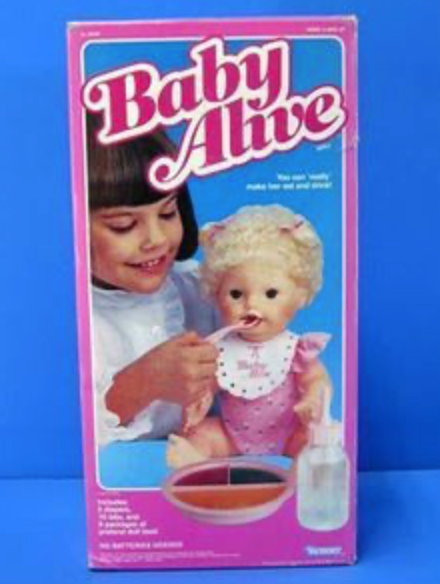 Over the next year I walked around coddling my Baby Shivers, who I probably named but couldn’t tell you at all what it was. She was probably a girl and she probably had “eyes like her Mommy.” Rachel did get a Baby Alive that year and as I suspected that doll was a headache. You had to feed her to get her to poop and she ate this gross pasty stuff and you always had to buy more things for her to keep her in tiptop shape and I’m pretty sure it was short-lived. So was Baby Shivers, but for a little while I had the doll I had waited my whole life for and my mom had her shining moment.
