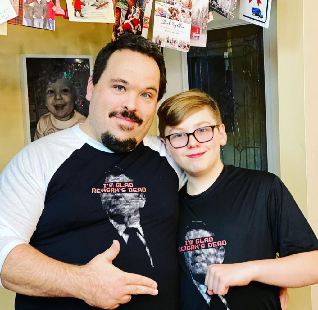Hi Everyone! Jerimiah and I have had people question the “I’m Glad Reagan’s Dead” t-shirts I bought for Jackson and Jerimiah for Christmas.