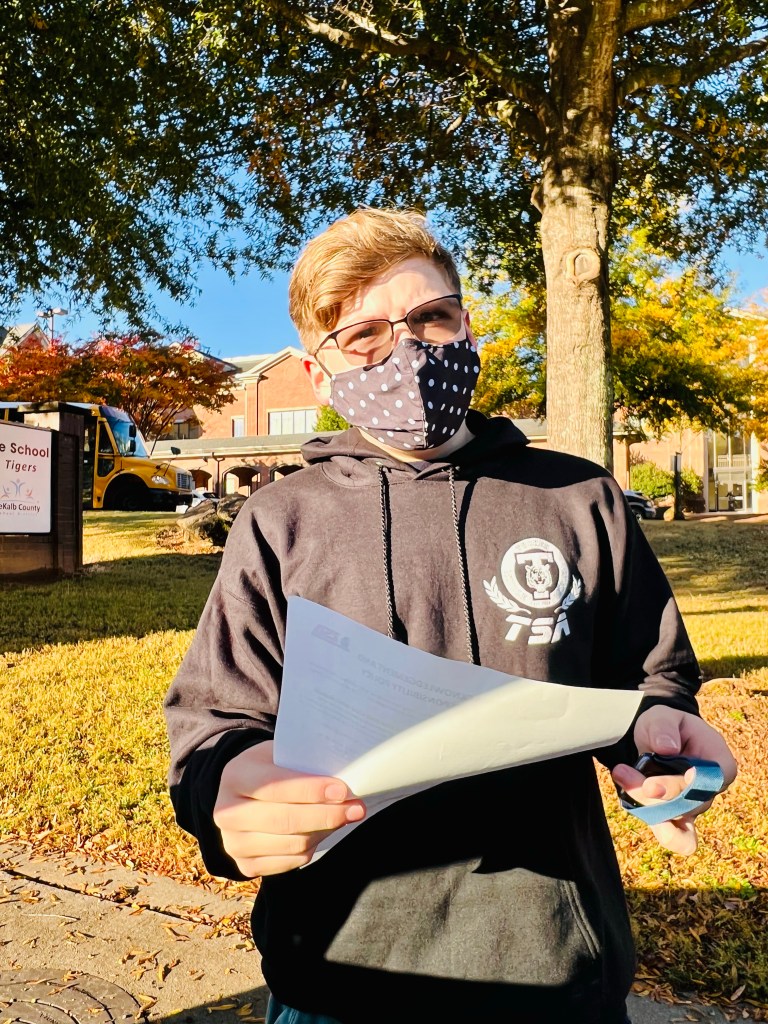 Jerimiah takes Jackson to school and on the way Jackson orders our Starbucks so it’s ready for Jerimiah to pick up after he drops him off. So he does and as he is headed to grab said Starbucks Jackson texts and is all, “Where is my Covid form?” Sc, sc, screech! So because we live in the time of Covid, there was a parent form to fill out that basically said I know we live in the time of Covid and still I am allowing my child to be in the care of his school district on this trip and if my child were to get Covid, I would not place blame on the school system. Okay, Jerimiah signed the form last night and handed it to Jackson who also had to sign it and told him to stick it in his bag when he was done. Guess which step he didn’t do?