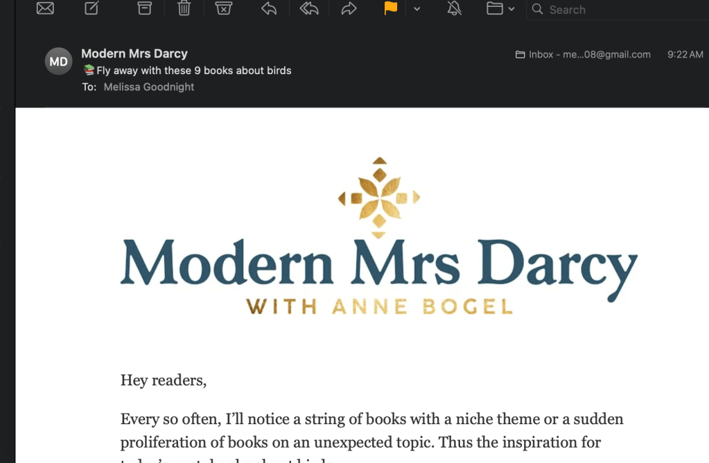One of them was this book from a looooong time ago (2017, remember that horrible, shitfire year?) written by Anne Bogel whose name was vaguely familiar and when I randomly opened the book as you do, I read that she is Modern Mrs. Darcy and ope, yeah, she is.